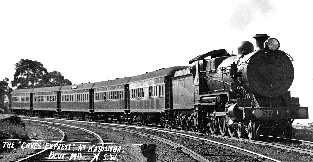 In the late 1920s two five car sets of end platform carriages were fitted with enclosed platforms and vestibuled gangways. Set 75, a Low elliptical roofed set and Set 76, a High elliptical roofed set were chosen to form a new express service to Mount Victoria. Commencing the Caves Express service in 1929, Set 75 was originally finished in blue and russet paintwork.